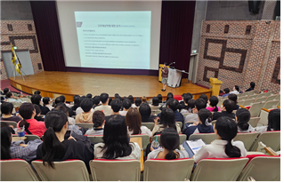 간호학부는 2025년 9월 23일 오후 2시부터 4시까지 마로니에홀에서 2학년 재학생을 대상으로 인성함양을 위한 교육프로그램을 개최하였다. 특강자는 시화병원 김옥경부원장님이고 주제는 임상실습 전 예비간호사로서의 자세였다. 전문직 간호사가 갖추어야 할 인성에 대한 임상현장의 사례를 통해 설명함으로써 실습을 앞둔 학생들에게 도움이 되었다. |